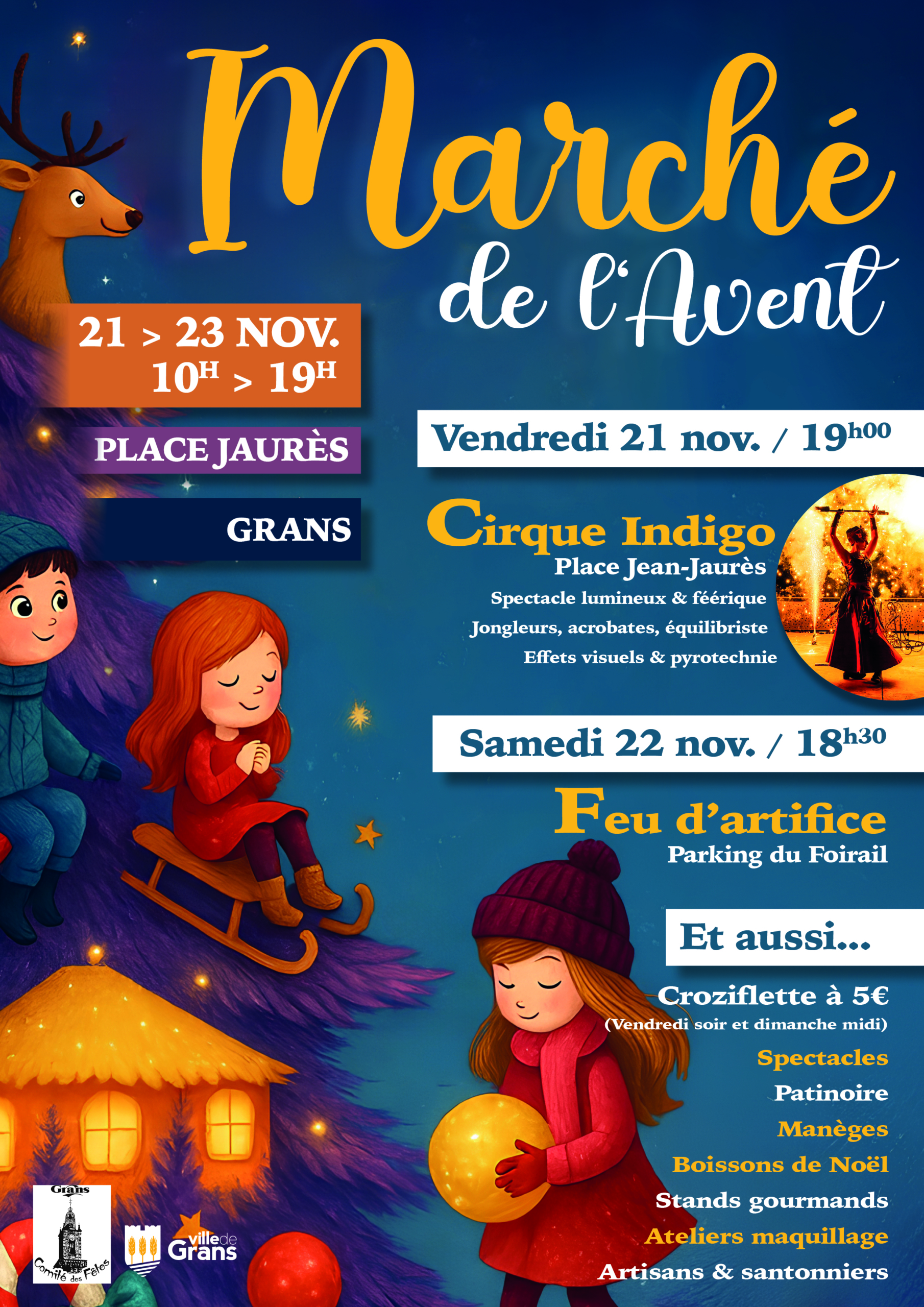 Rendez-vous dès 18h30 place Jean-Jaurès pour le lancement des illuminations avant le spectacle du cirque Indigo prévu à 19h. Dès 17h, Manèges offerts par la municipalité, restauration (croziflette à 5 euros) et buvette