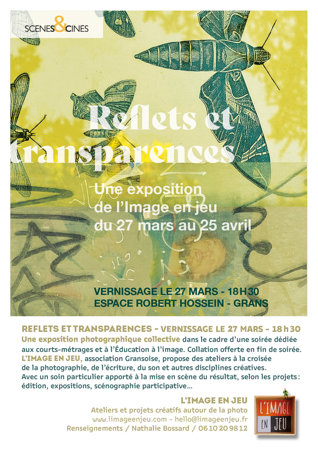 L’Image en jeu, association gransoise, propose des ateliers à la croisée de la photographie, de l’écriture, du son et autres disciplines créatives. Avec un soin particulier apporté à la mise en scène du résultat, sekin les projets : édition, expositions, scénographie participative.